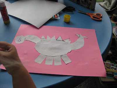 One morning, I gave the kids printouts which had cutouts that could be combined to make a dinosaur. David took one look at it and set out to do it for himself.